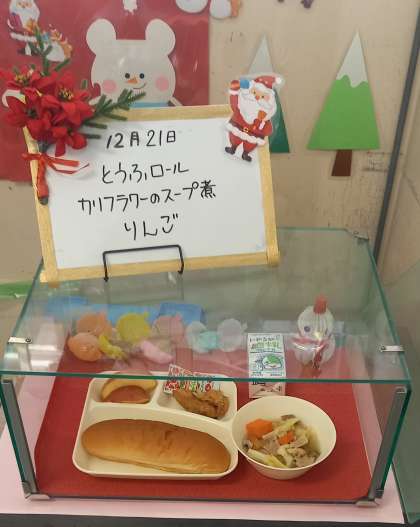 給食室に来た当番の子ども達から「2学期ありがとうございました!」と調理員にあいさつがありました。