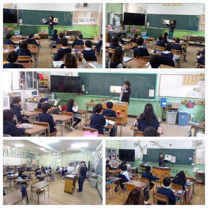 読み聞かせボランティアの方が、子どもたちに絵本の読み聞かせをしてくださっています。
