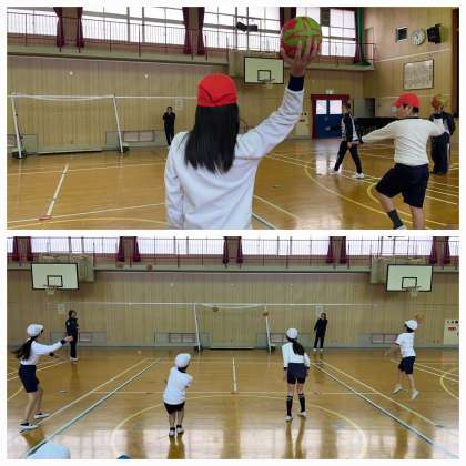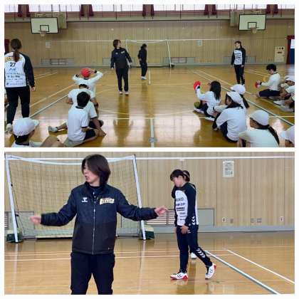 今日のテーマ「考えて、挑戦する」を確認、これからシュートの練習です。
