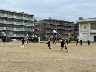 ほどよい風と天候に恵まれたので、全員でたこあげをしました♪