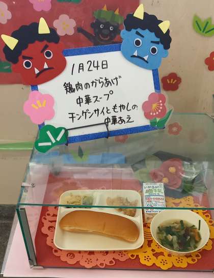 今日の献立には、みんな大好き『鶏肉のからあげ』が(^-^)