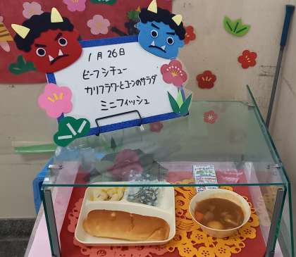 寒い日にぴったり『ビーフシチュー』が、かけ足大会をがんばった子ども達の心と体を温めてくれます(^-^)
