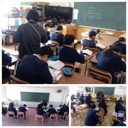 6年生は、中学で始まる「数学」の基礎となるものを卒業までにしっかりと身に付けられるよう、学級を3つに分け算数のまとめに取り組んでいます。