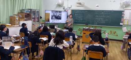 写真資料を見ながら、大阪市ができた頃の様子について考えています。