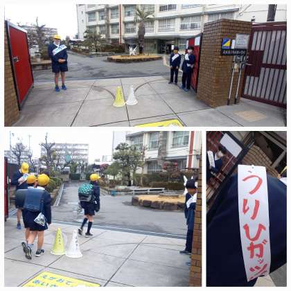 今回は正門だけでなく、各学級の教室前にも立って「あいさつ」しています。
