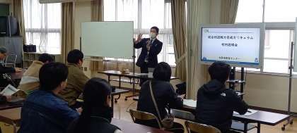 教育センターから鈴木指導主事を講師にお招きし、「総合的読解力育成カリキュラム」についての研修をしています。