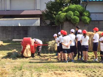 この後、お米の殻の部分をわってはずし、ぬかの部分をとりのぞく精米をして、田中さんが、新米を学校に届けてくださるとのことです。子ども達も、自分達が、かかわったお米が届けられるのを楽しみにしていました。