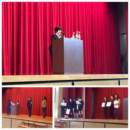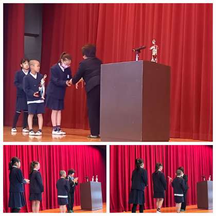 「読書の木大賞」の学級には、トロフィーが贈られました。