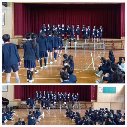 この場面だけで、全校児童が集まっての送る会ができることへの喜びが溢れてきました。