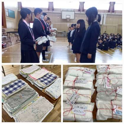 一針ずつに、これで瓜破東小学校をきれいにしてほしいという思いが込められた「ぞうきん」が、6年生から贈られました。