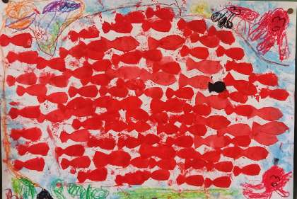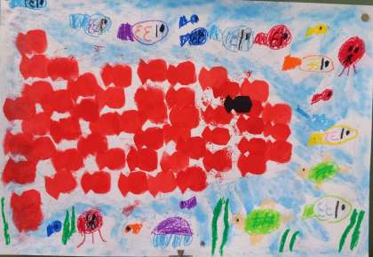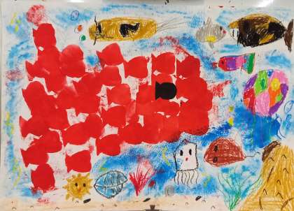 国語科で学習した『スイミー』の世界を表現しました。