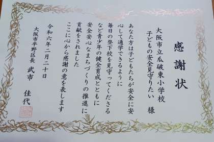 みまもりたいの皆さんに、感謝状と代表委員会からの寄せ書きを贈らせていただきました。