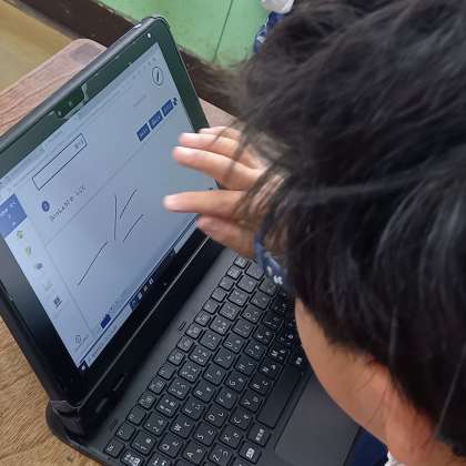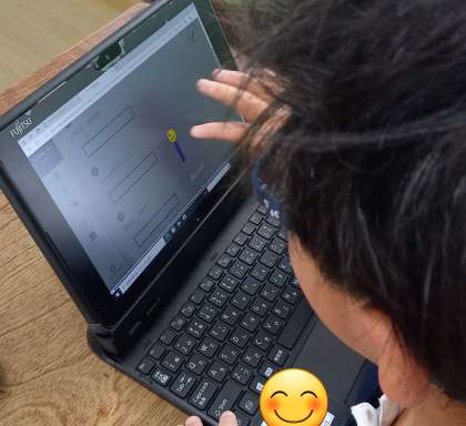 課題が終わった子どもは、タブレット端末を使って漢字の書き取りや算数の文章問題などに取り組みます。