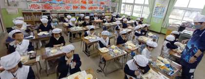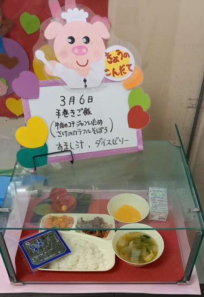 手巻きご飯を楽しみながら、心の中で6年生の卒業をお祝いしました。