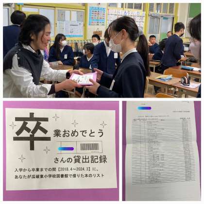 主幹学校司書より、子ども達の6年間の読書記録が手渡されました。