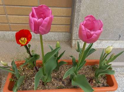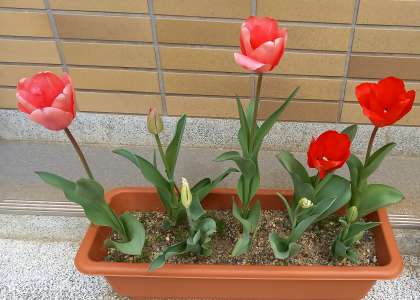 ぽかぽか陽気に、チューリップが咲き始めています。