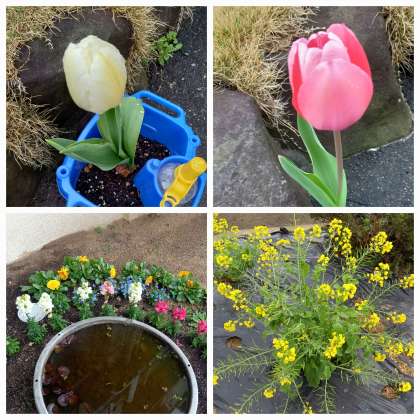校内のあちらこちらで、色鮮やかな花が咲いています。