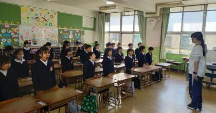 1年生の教室では、「覚えていますか?」という先生の言葉がけで朝のあいさつをしています。