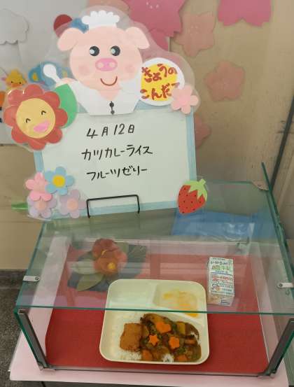 4月からカレーライスは、カレールウの素(米粉)を使って調理しています。
