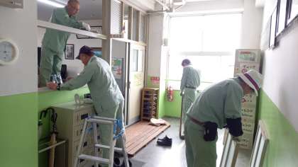 本校と近隣校の管理作業員が協力して、環境整備に努めています。