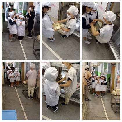 1年生が、自分達だけで給食当番を始めました。