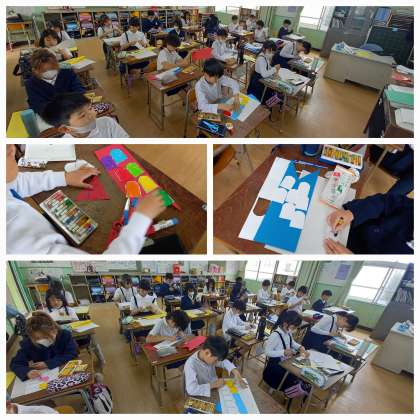 パスで描いたうろこのオリジナリティーあふれる「こいのぼり」の完成が楽しみですね(^-^)