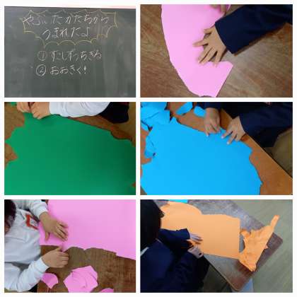 やぶいたかたちを「◯◯」に見立てて、作品にしていきます。
