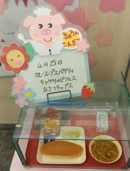 今日は、配膳が難しい「カレースパゲッティ」が献立にありましたが、当番の子どもたちは上手に配膳していました。