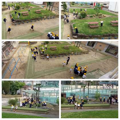 てのひらずかんをもって、中庭や学習園を探険しています。