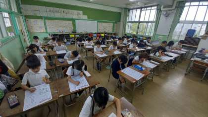 算数のテストに取り組んでいます。 計算ミスがないか、何度も見直しています。