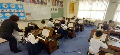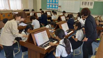 アンサンブルオルガンを使って、指くぐりの練習をしています。