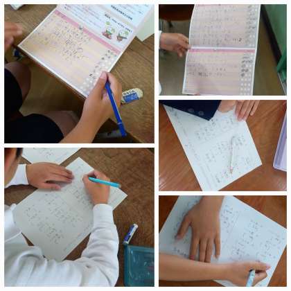 うりひが漢字検定プリントをしたり、本を読んで「ひらちゃん読書ノート」を記録したりしています。