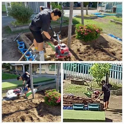 予備実験や学習園の整備をしたり、出前授業の講師との打合せをしたりしています。