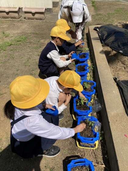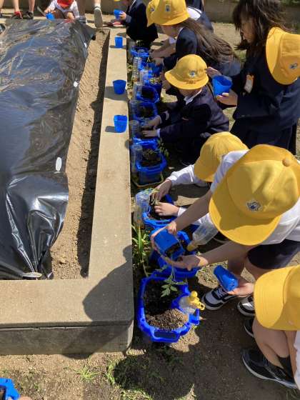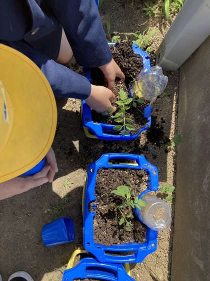 トマトの苗を植えてるの?と聞くと、ちがうよミニトマトだよと教えてくれました。