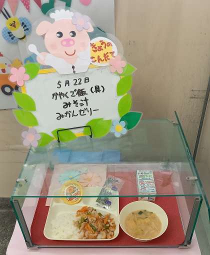 今日は焼き物機点検のため、「ういろう」から「みかんゼリー」に献立変更になっています。