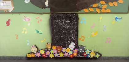 玄関入ってすぐにある「読書の木」に、かわいらしいお友だちが遊びに来てくれました♪