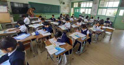 テストに取り組んでいます。 問題をよく読み、じっくり考えて解答しています。