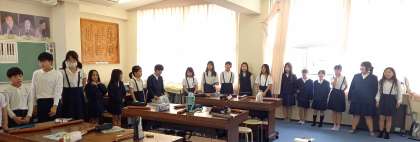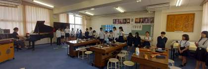 姿勢や口形、視線を意識して響きのある声で歌います。