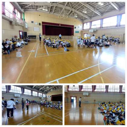 台風の接近により、大阪府全域に暴風雨警報が発令されたと想定して、避難訓練(台風時の引き渡し)を行いました。