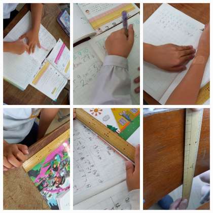 ノートや教科書、鉛筆、椅子の背もたれなど子どもたちがはかってみたいものは、いろいろあります。