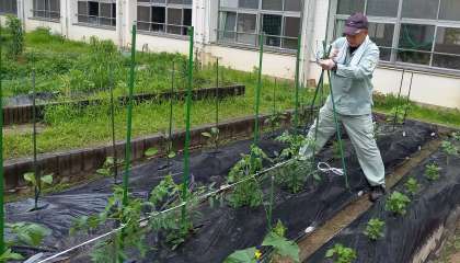 学習園で育てている野菜が、太陽の光を浴びて、ぐんぐん大きくなっています。