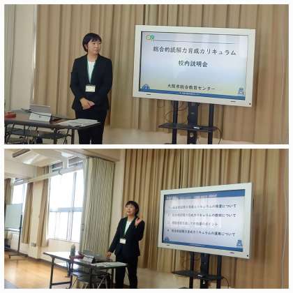 大阪市総合教育センターから、山川明子先生に来ていただき、「総合的読解力育成カリキュラム」の研修をしました。