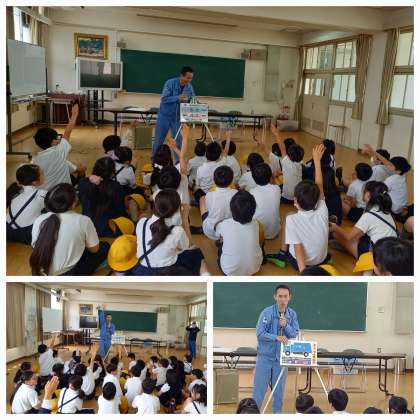 多目的室に移動し、ゴミを減らす工夫やリサイクルすることの大切さについて教えていただきました。