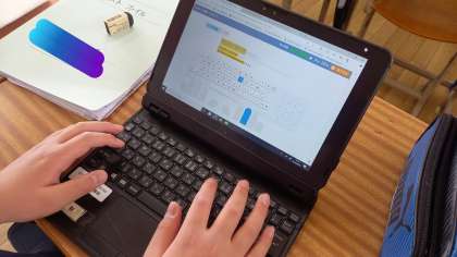 タブレット端末を使って、一人学びに取り組んでいます。