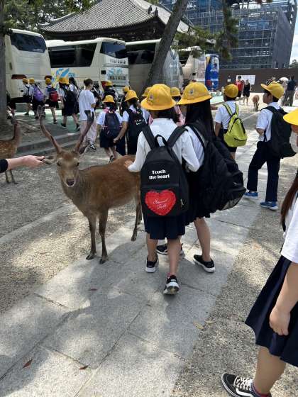 国宝館前で、かわいい鹿とあいさつできました(^-^)