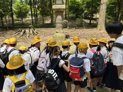 カナヘビを見かけ、思わず足をとめる子どもたち。