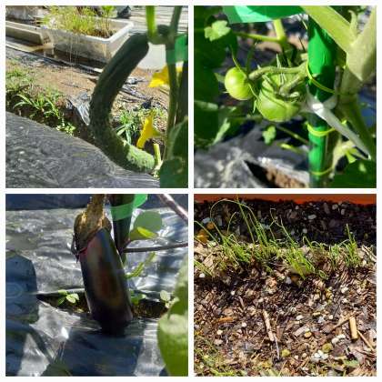 学習園の野菜(きゅうり・トマト・なす・ネギ)が、ぐんぐん成長しています。
