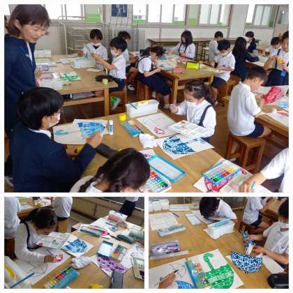 今日は、絵の具で彩色します。