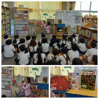 生活科でミニトマトを育てている2年生にぴったりの作品を読み聞かせしてもらいました。
