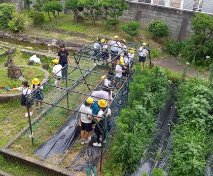 学習園では、「ツルレイシ」と「ヒョウタン」の苗を植えています。